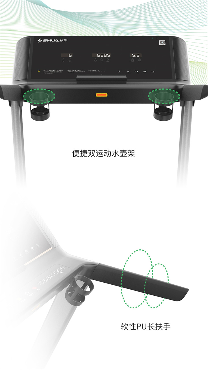 leyu.樂魚體育推薦健身器材-舒華商用電動跑步機SH-T6500擁有10.1寸IPS高清觸摸屏、Z型動感時尚外觀設計、70×150mm精鋼立柱機身、F級高效靜音馬達、520mm商用豪華跑帶和35mm雙層全跑臺減震跑板等優(yōu)勢,讓您享受科學跑步。